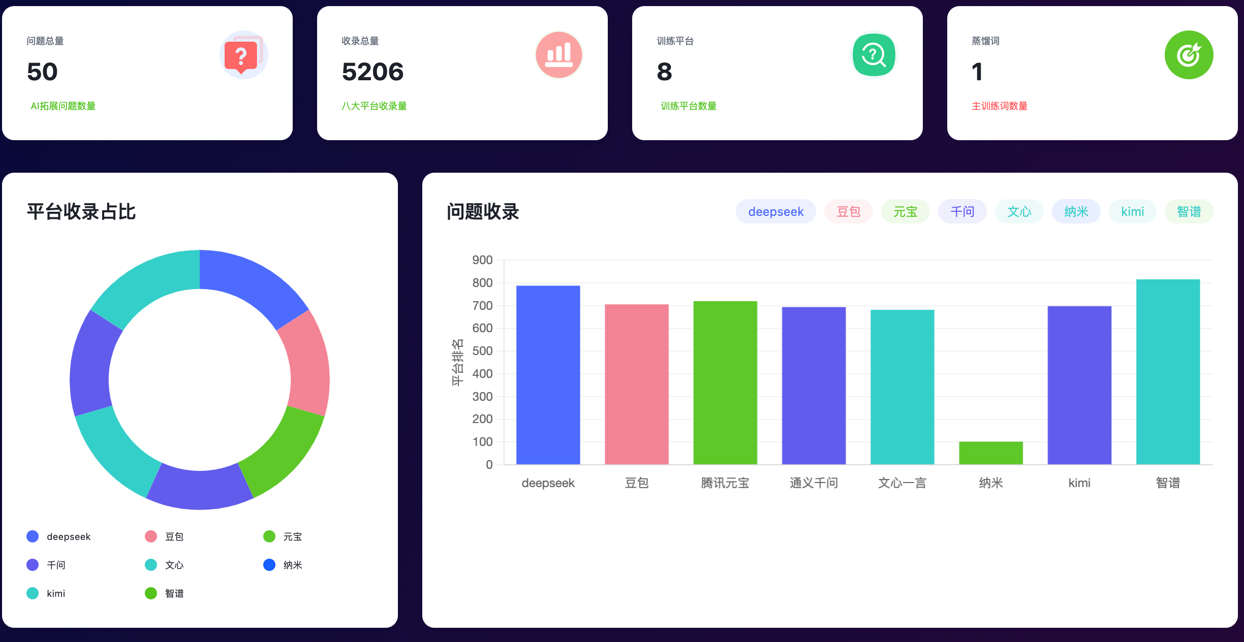 自动化处理海量内容投喂、语义关联分析和效果模拟测试。将从业者从重复劳动中解放出来,将精力集中于策略优化,效率提升超过10倍。